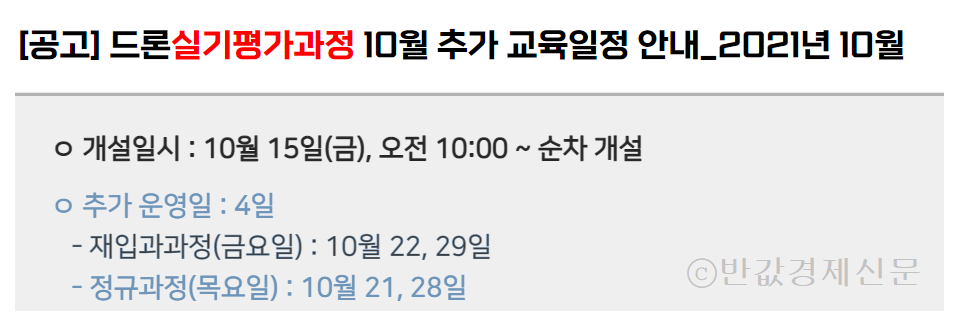 | 드론 전문교관과정 재시험 탄력 운영(1개월 응시제한 해지) (0) | 2021.09.08 |
