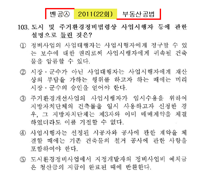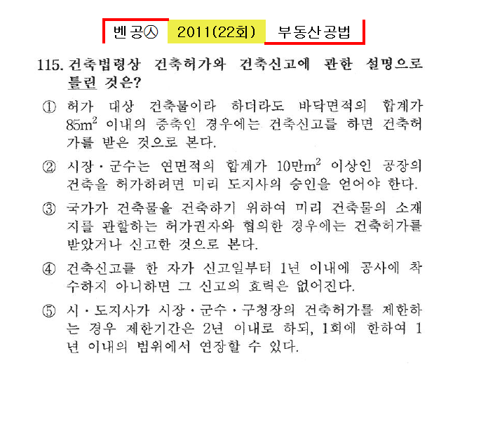 벤공㉦2011년 22회(111~120번)공법*기출총정리