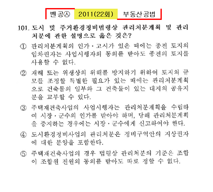벤공㉦2011년 22회(101~110번)공법*기출총정리