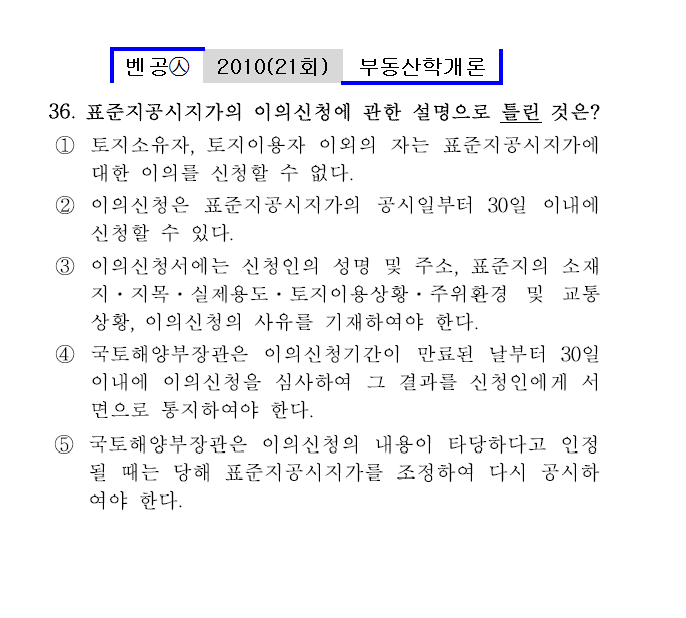 ● 토지소유자, 토지이용자 이외의 자는 표준지공시지가에 대한 이의를 신청할 수 없다.㉦있다