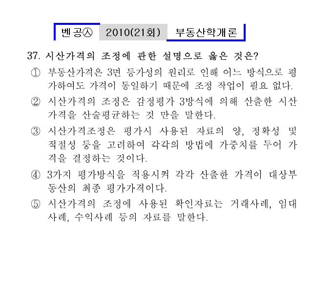 21회㉦37. 시산가격의 조정에 관한 설명으로 옳은 것은?