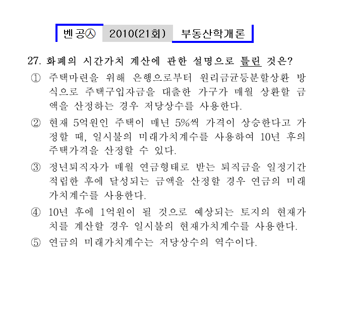| 벤공㉦2010년 21회(1~20번)부동산학개론*기출총정리 (0) | 2019.12.01 |