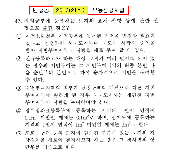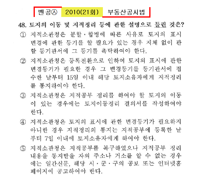 벤공㉦2010년 21회(41~52번)공시법(지적)*기출총정리