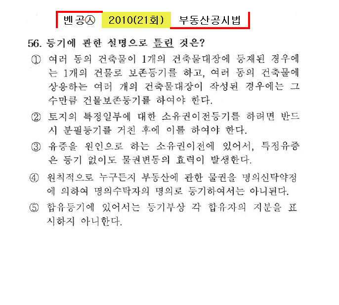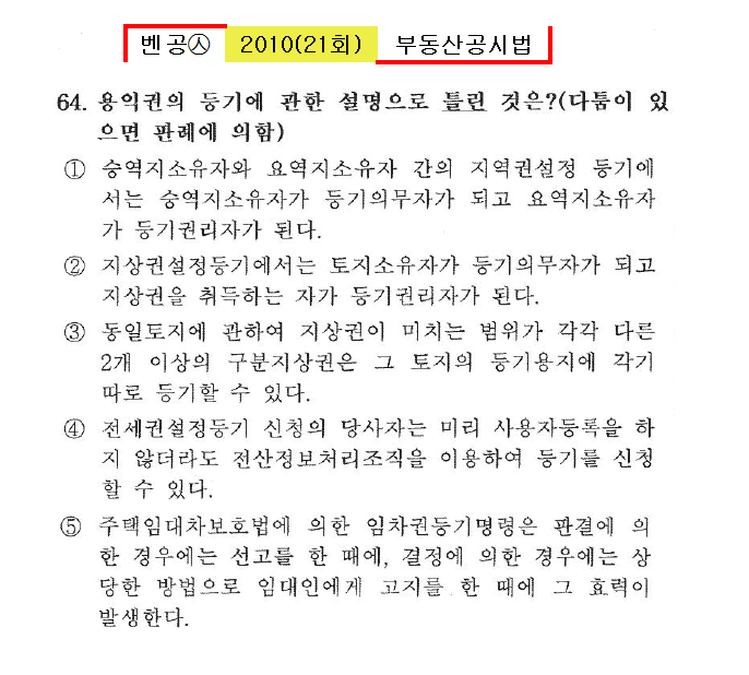 벤공㉦2010년 21회(53~64번)공시법(등기)*기출총정리