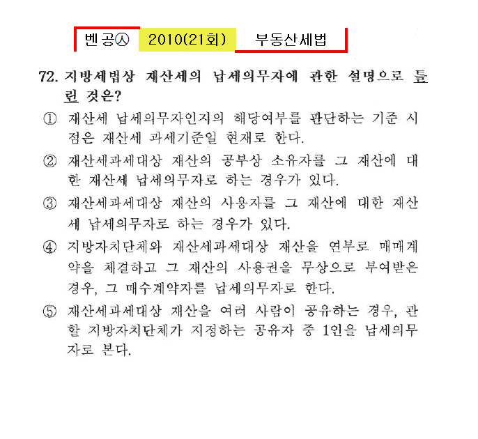 벤공㉦2010년 21회(65~80번)세법*기출총정리