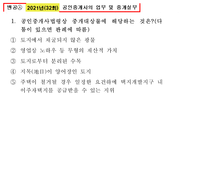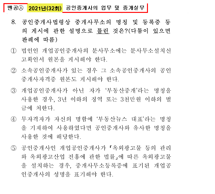 벤공㉦2021년 32회(01~10번) 부동산중개사법_기출
