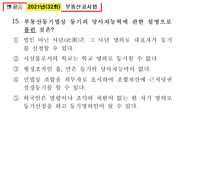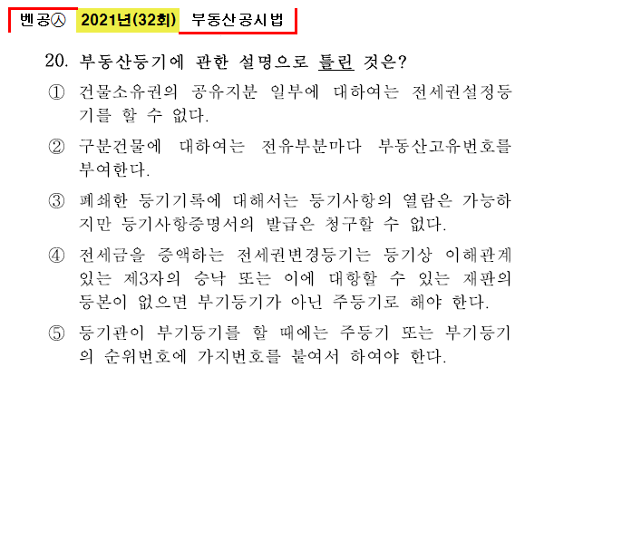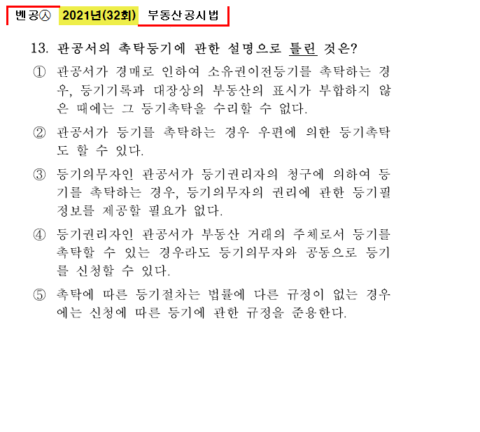 벤공㉦2021년 32회(13~24번) 부동산공시법_기출