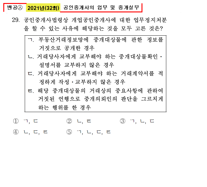 벤공㉦2021년 32회(21~30번) 부동산중개사법_기출