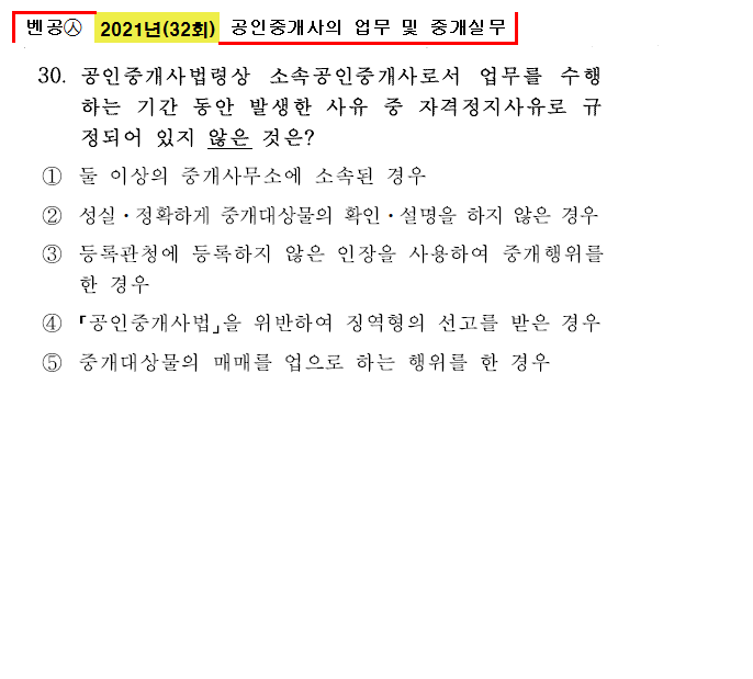 벤공㉦2021년 32회(21~30번) 부동산중개사법_기출