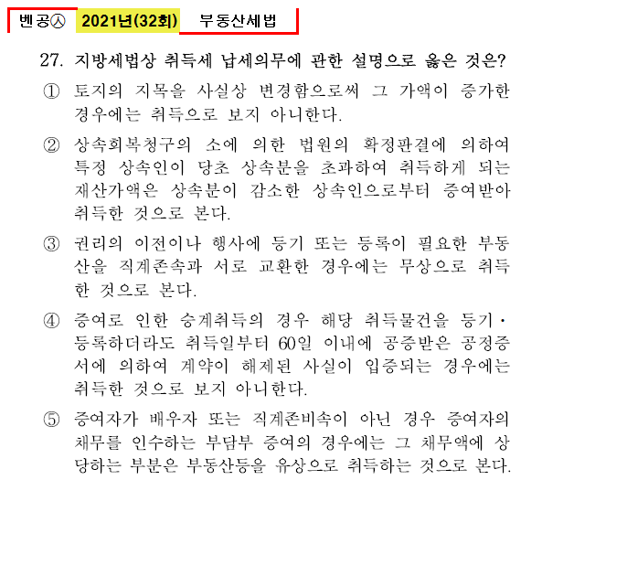 벤공㉦2021년 32회(25~32번) 부동산세법_기출