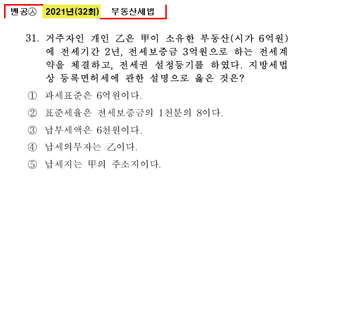 벤공㉦2021년 32회(25~32번) 부동산세법_기출