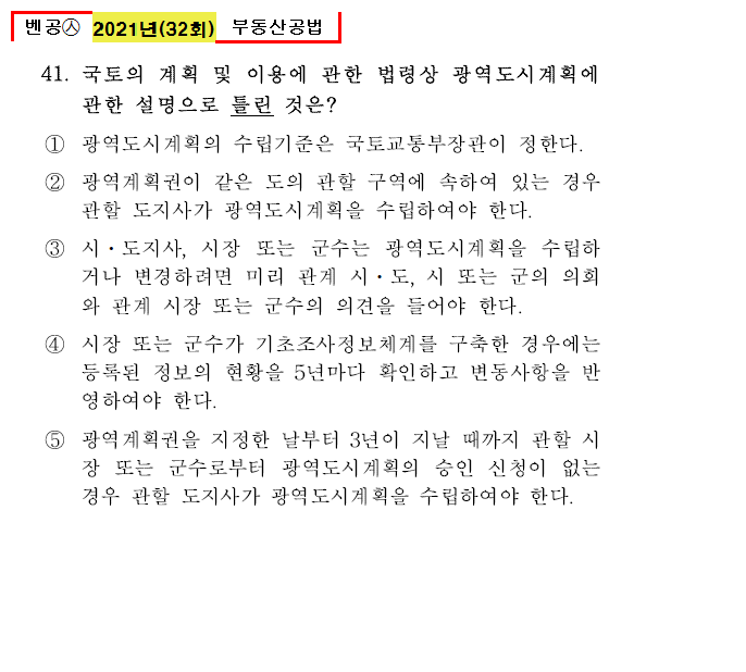 벤공㉦2021년 32회(41~50번) 부동산공법_기출
