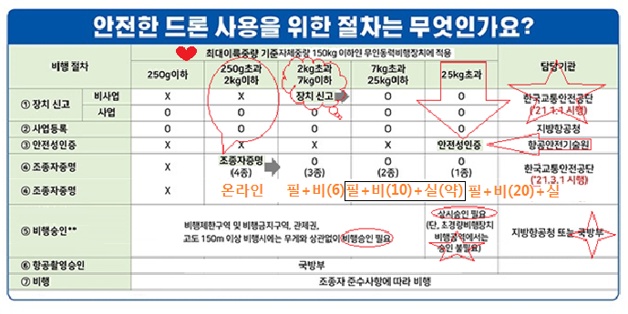 25kg이하는 금지, 제한, 관제권, 고도150m이상만 승인을 받으면 되고