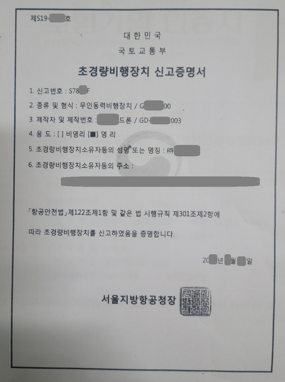 드론도 집처럼 구입하면 신고해야 합니다