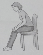 가. 건강한 손으로 바닥을 짚게 한다. 나. 대상자의 마비 측 어깨와 몸통을 부축해준다. 다. 건강한 다리에 힘을 주어 바닥에 내려앉게 한다. 라. 휠체어의 잠금 장치를 잠그고 발 받침대를 올려 발을 바닥에 내린다. |