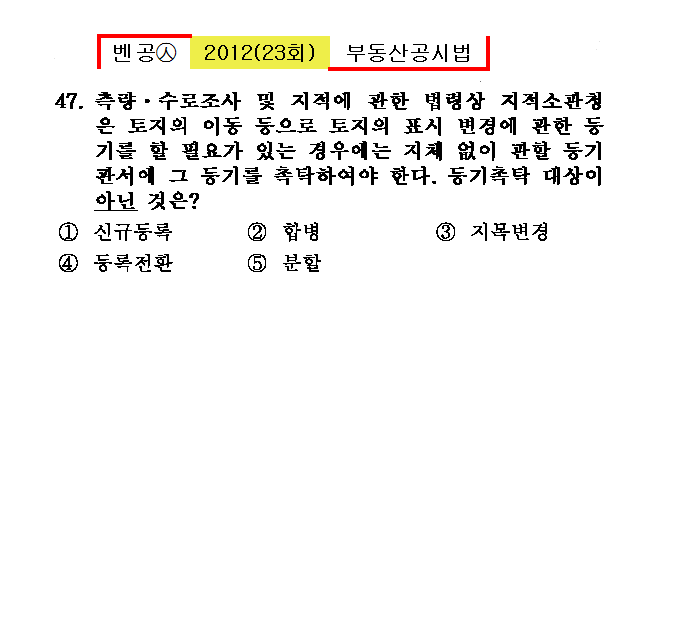 벤공㉦2012년 23회(41~52번)공시법(지적)*기출총정리