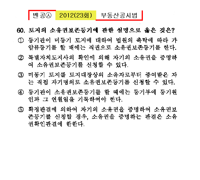 벤공㉦2012년 23회(53~64번)공시법(등기)*기출총정리