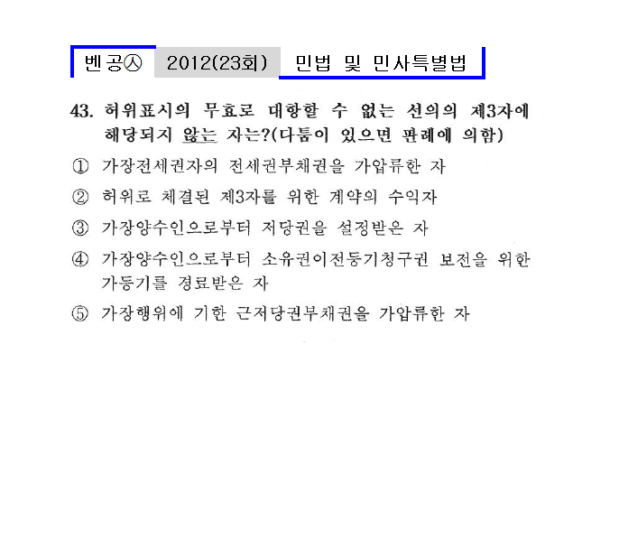 23회㉦43. 허위표시의 무효로 대항할 수 없는 선의의 제3자에 해당되지 않는 자는?(다툼이 있으면 판례에 의함)