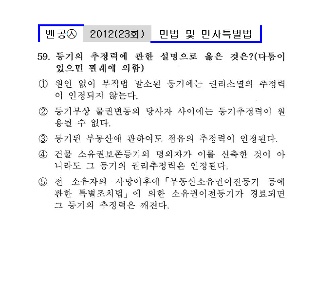 23회㉦59. 등기의 추정력에 관한 설명으로 옳은 것은?(다툼이 있으면 판례에 의함)