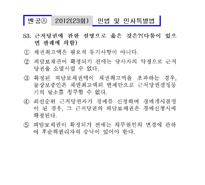 23회㉦53. 근저당권에 관한 설명으로 옳은 것은?(다툼이 있으면 판례에 의함)