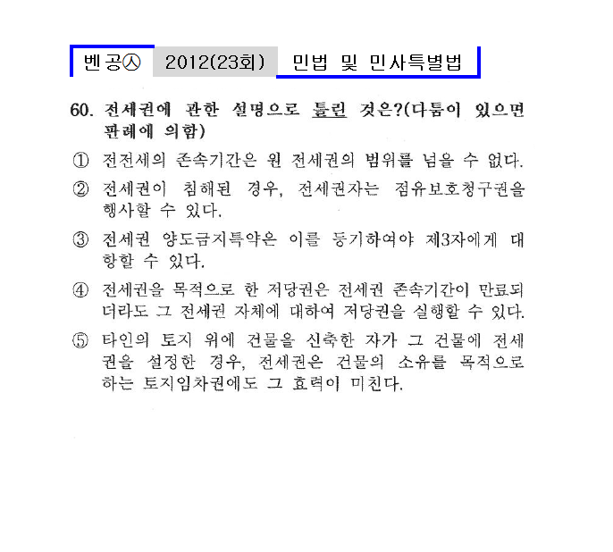23회㉦60. 전세권에 관한 설명으로 틀린 것은?(다툼이 있으면 판례에 의함)