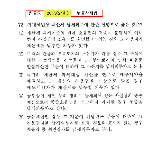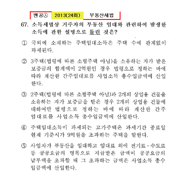 벤공㉦2013년 24회(65~72번)세법*기출총정리