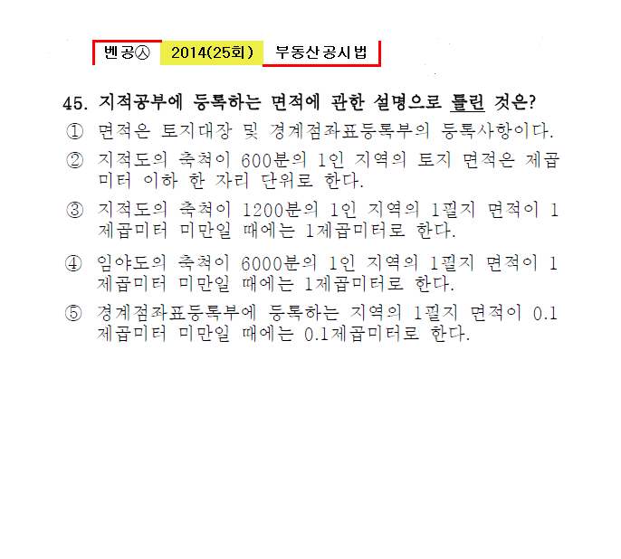 벤공㉦2014년 25회(41~52번)공시법(지적)*기출총정리