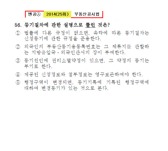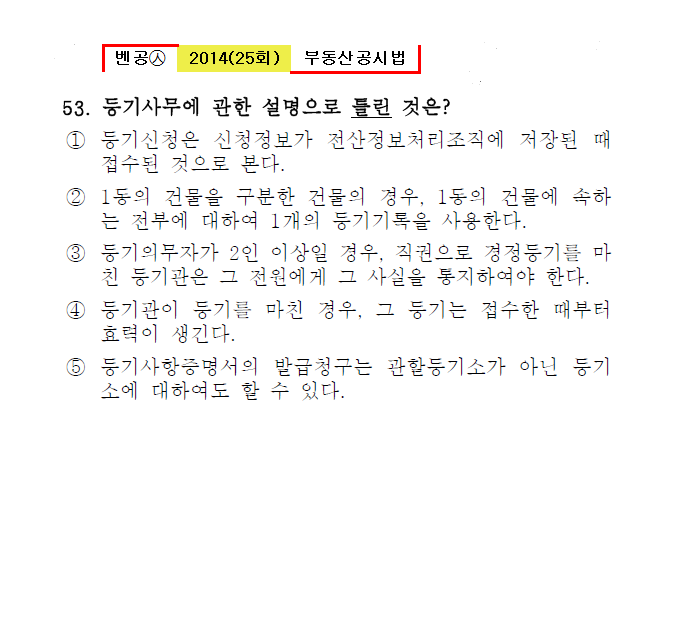 벤공㉦2014년 25회(53~64번)공시법(등기)*기출총정리