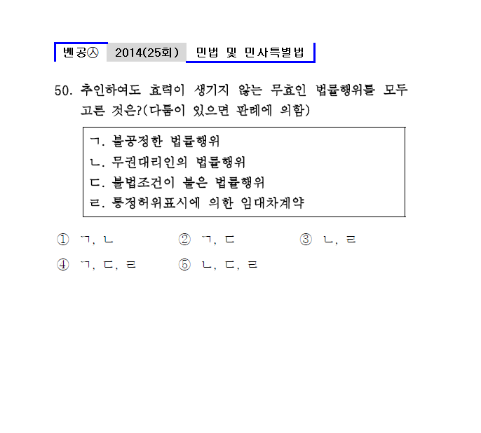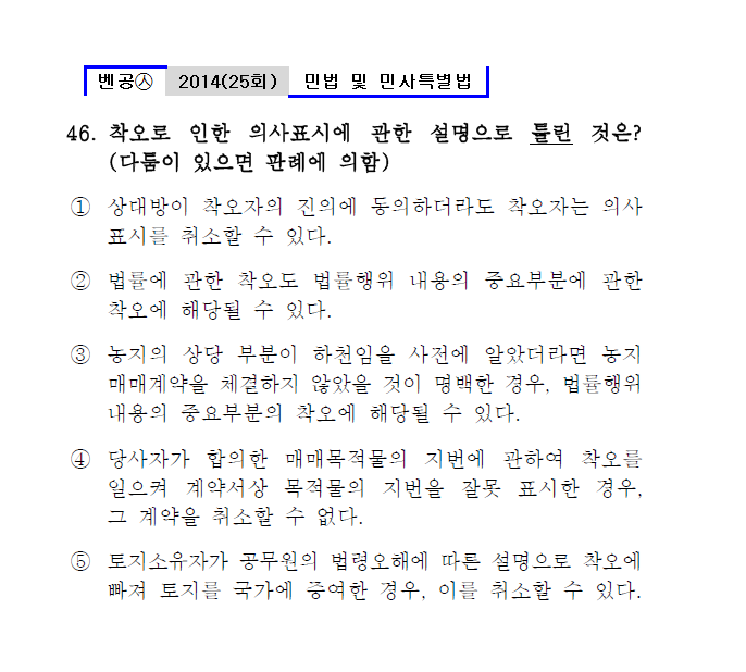 벤공㉦2014년 25회(41~60번)민법 및 민사특별법*기출총정리