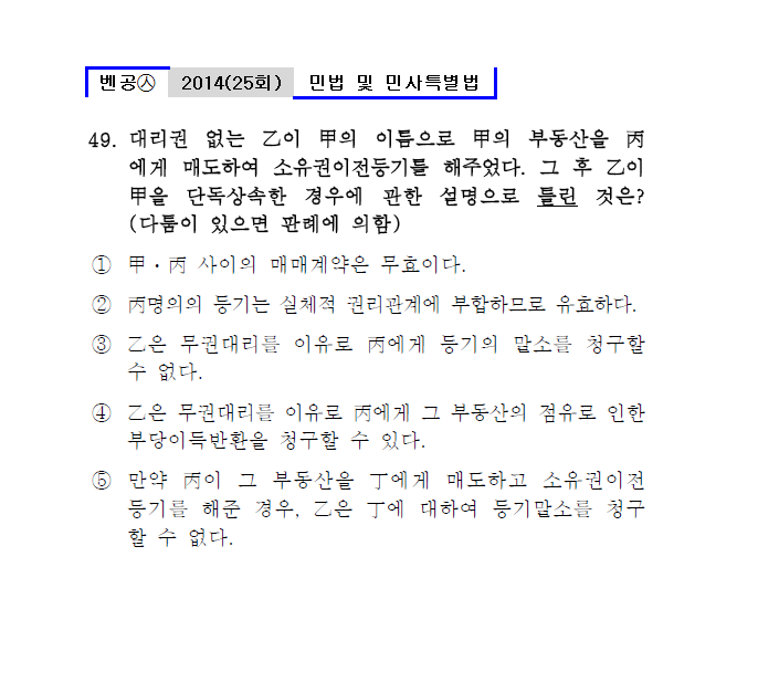 벤공㉦2014년 25회(41~50번 문제)민법 및 민사특별법