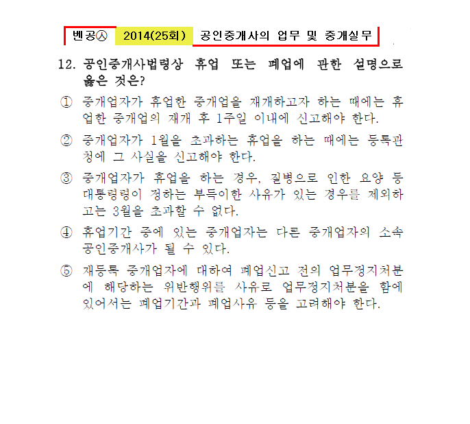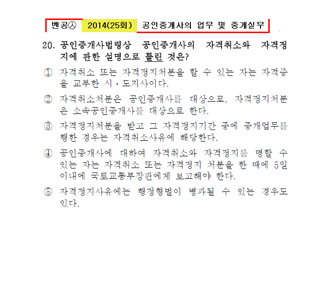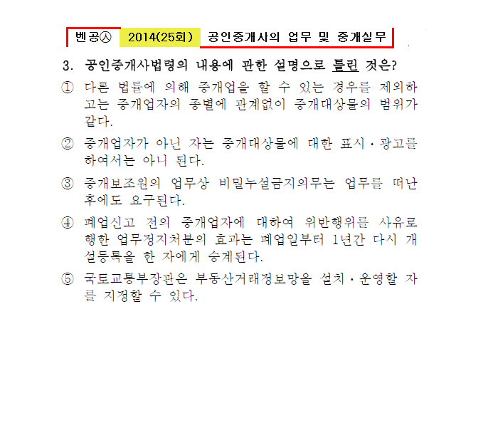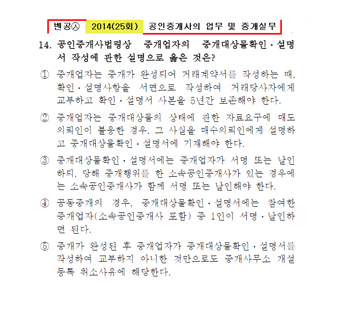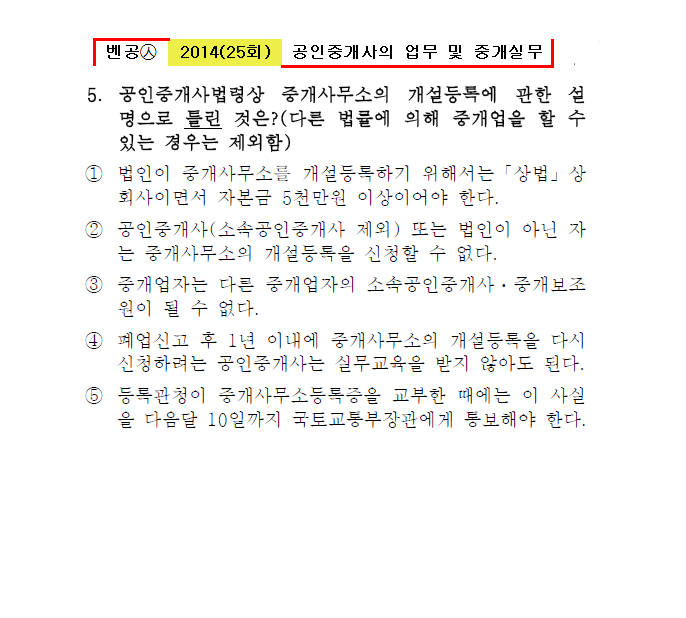 벤공㉦2014년 25회(1~20번)중개사법*기출총정리