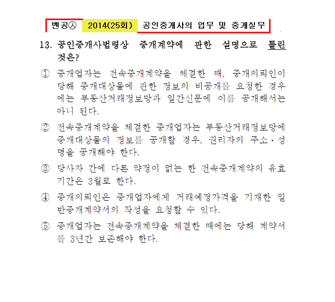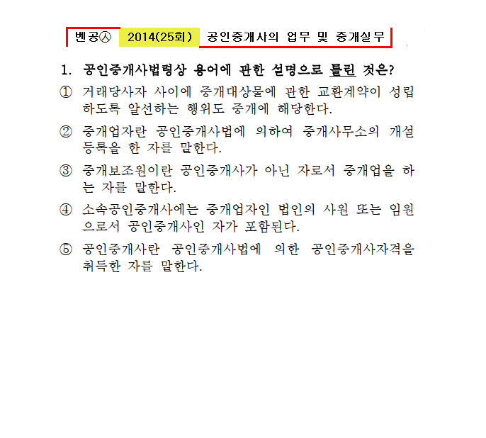 벤공㉦2014년 25회(1~10번)중개사법*기출총정리
