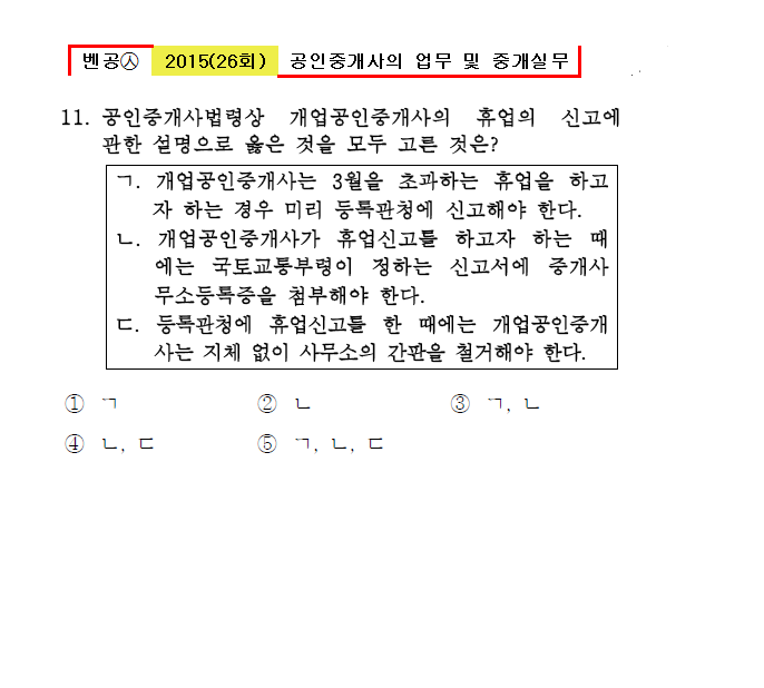 벤공㉦2015년 26회(11~20번) 중개사법*기출총정리