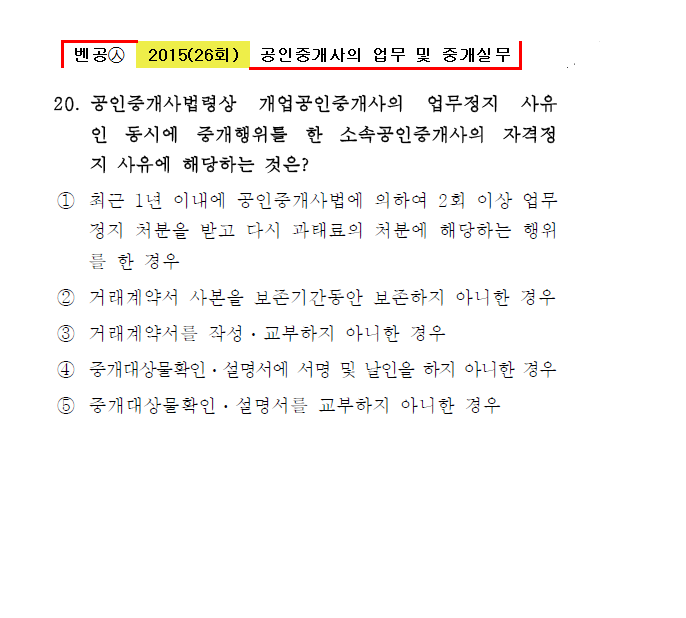 벤공㉦2015년 26회(11~20번) 중개사법*기출총정리