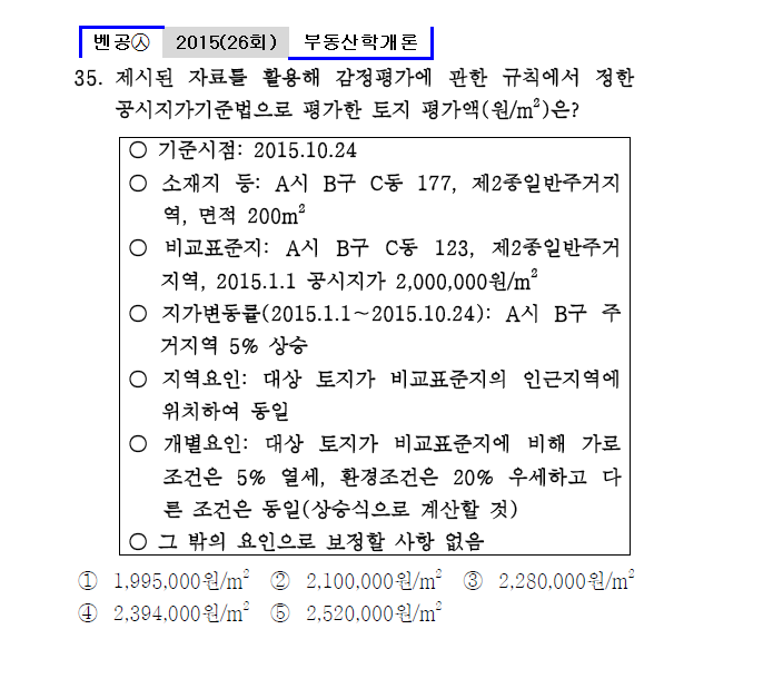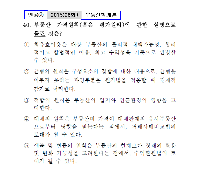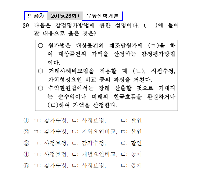 벤공㉦2015년 26회(31~40번 문제)부동산학개론