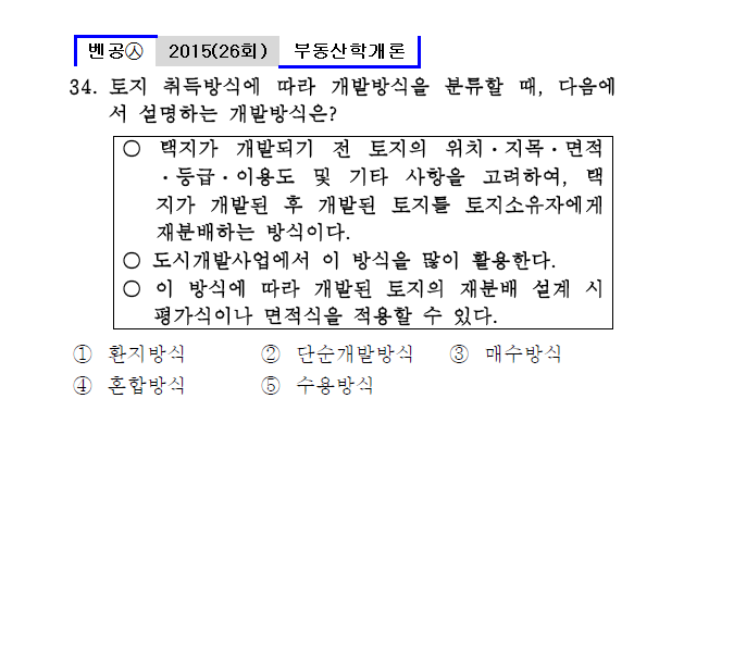 26회㉦34. 토지 취득방식에 따라 개발방식을 분류할 때, 다음에서 설명하는 개발방식은?