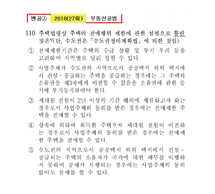 벤공㉦2016년 27회(101~110번) 공법*기출총정리