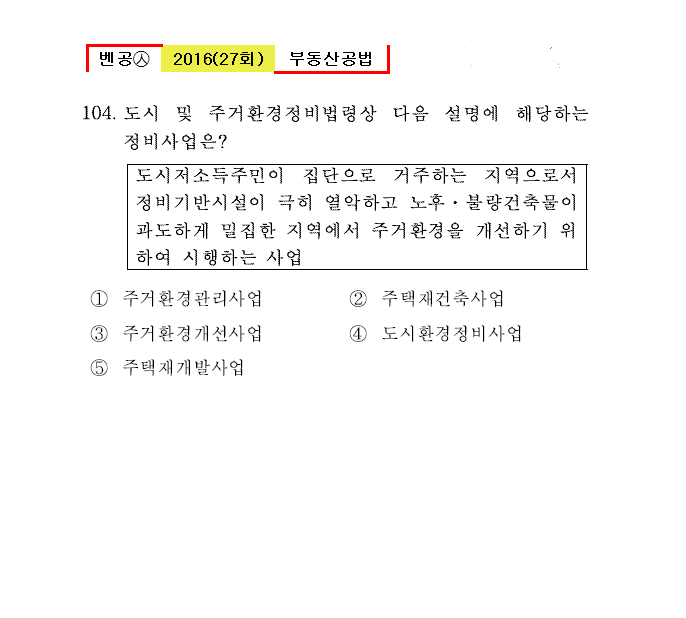 27회㉦104. 도시 및 주거환경정비법령상 다음 설명에 해당하는 정비 사업은?