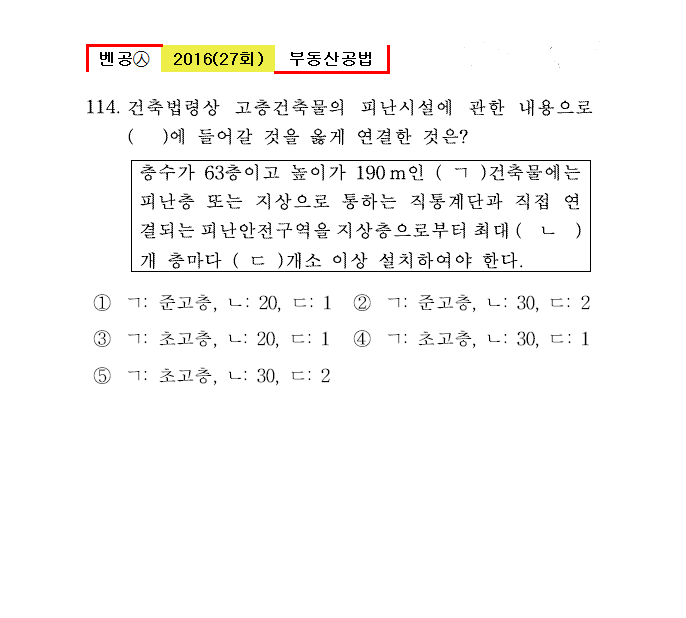 27회㉦114. 건축법령상 고층건축물의 피난시설에 관한 내용으로 ( )에 들어갈 것을 옳게 연결한 것은?