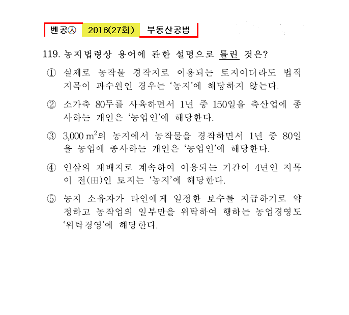 ① 실제로농작물 경작지로 이용되는 토지이더라도 법적 지목이 과수원인 경우는 '농지'에 해당하지 않는다.
