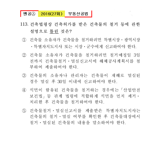 벤공㉦2016년 27회(111~120번) 공법*기출총정리