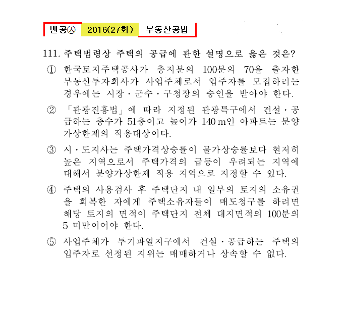 벤공㉦2016년 27회(111~120번) 공법*기출총정리