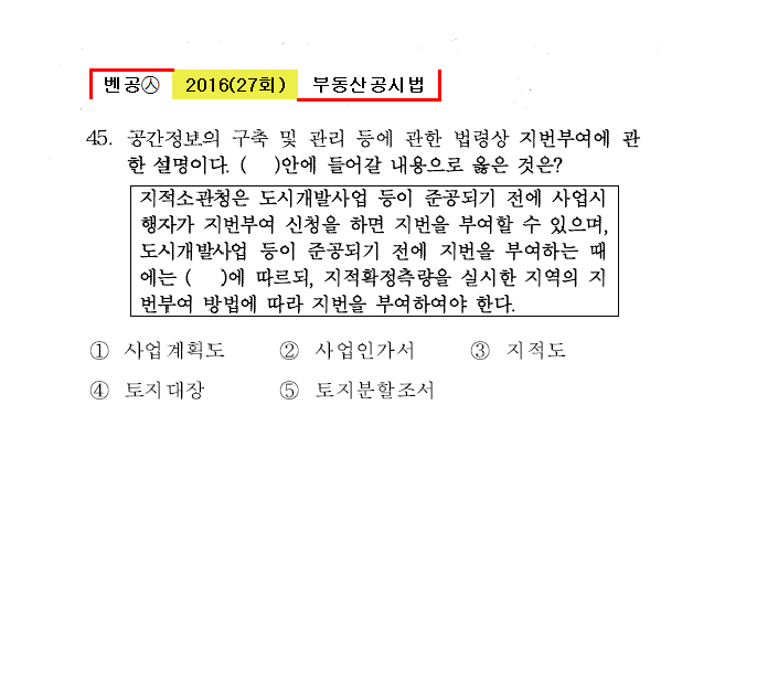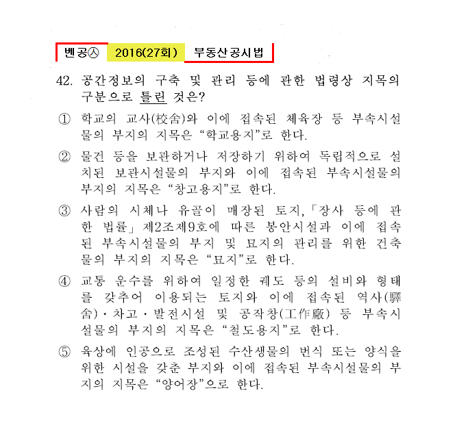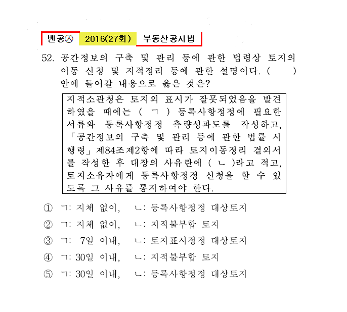 벤공㉦2016년 27회(41~52번) 공시법(지적)*기출총정리