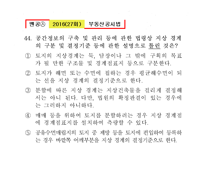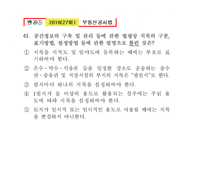 벤공㉦2016년 27회(41~52번) 공시법(지적)*기출총정리