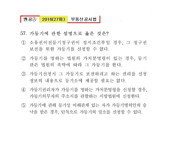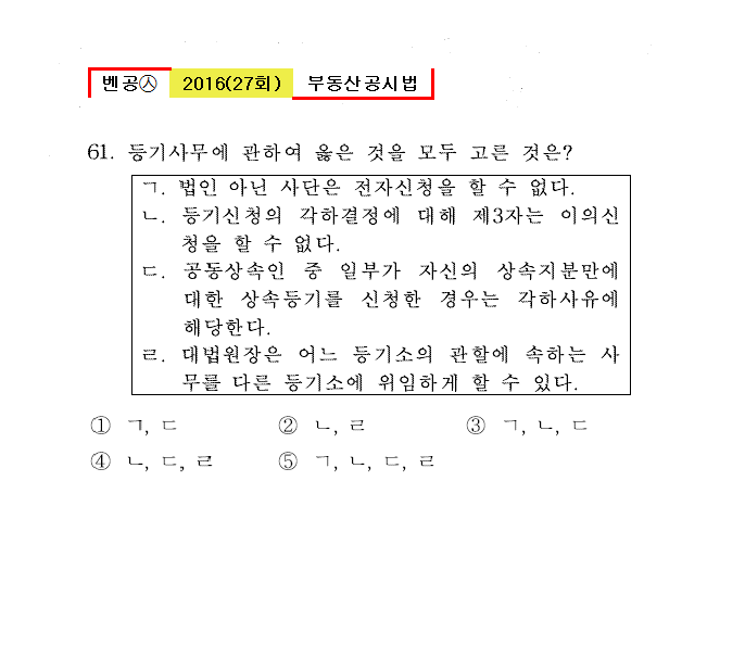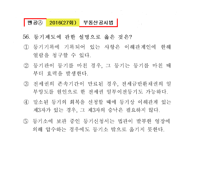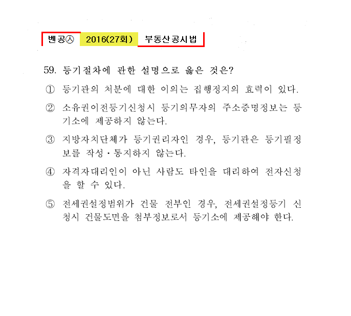 벤공㉦2016년 27회(53~64번) 공시법(등기)*기출총정리