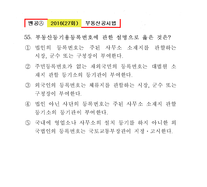 27회㉦55. 부동산등기용등록번호에 관한 설명으로 옳은 것은?