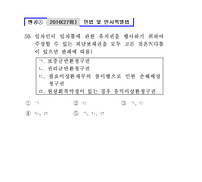 27회㉦59. 임차인이 임차물에 관한 유치권을 행사하기 위하여 주장할 수 있는 피담보채권을 모두 고른 것은?(다툼이 있으면 판례에 따름)