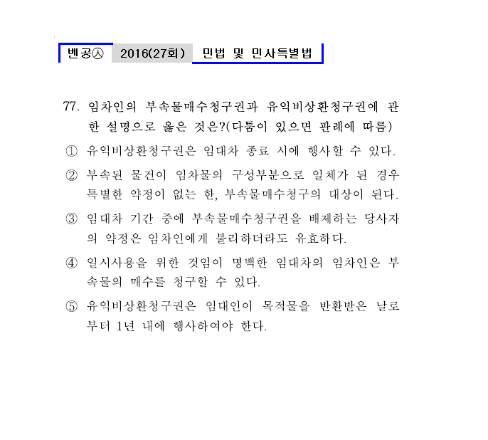 벤공㉦2016년 27회(71~80번 문제) 민법 및 민사특별법
