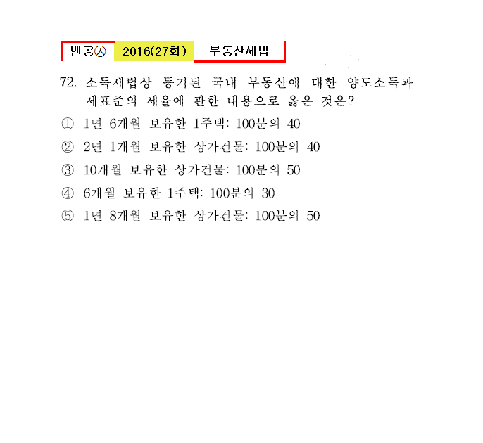 27회㉦72. 소득세법상 등기된 국내 부동산에 대한 양도소득과세표준의 세율에 관한 내용으로 옳은 것은?