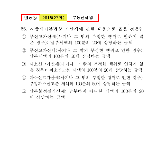 벤공㉦2016년 27회(65~80번) 세법*기출총정리